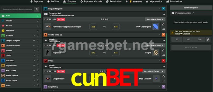O cunbet oferece uma grande seleção de opções de apostas em e-sports com probabilidades competitivas
